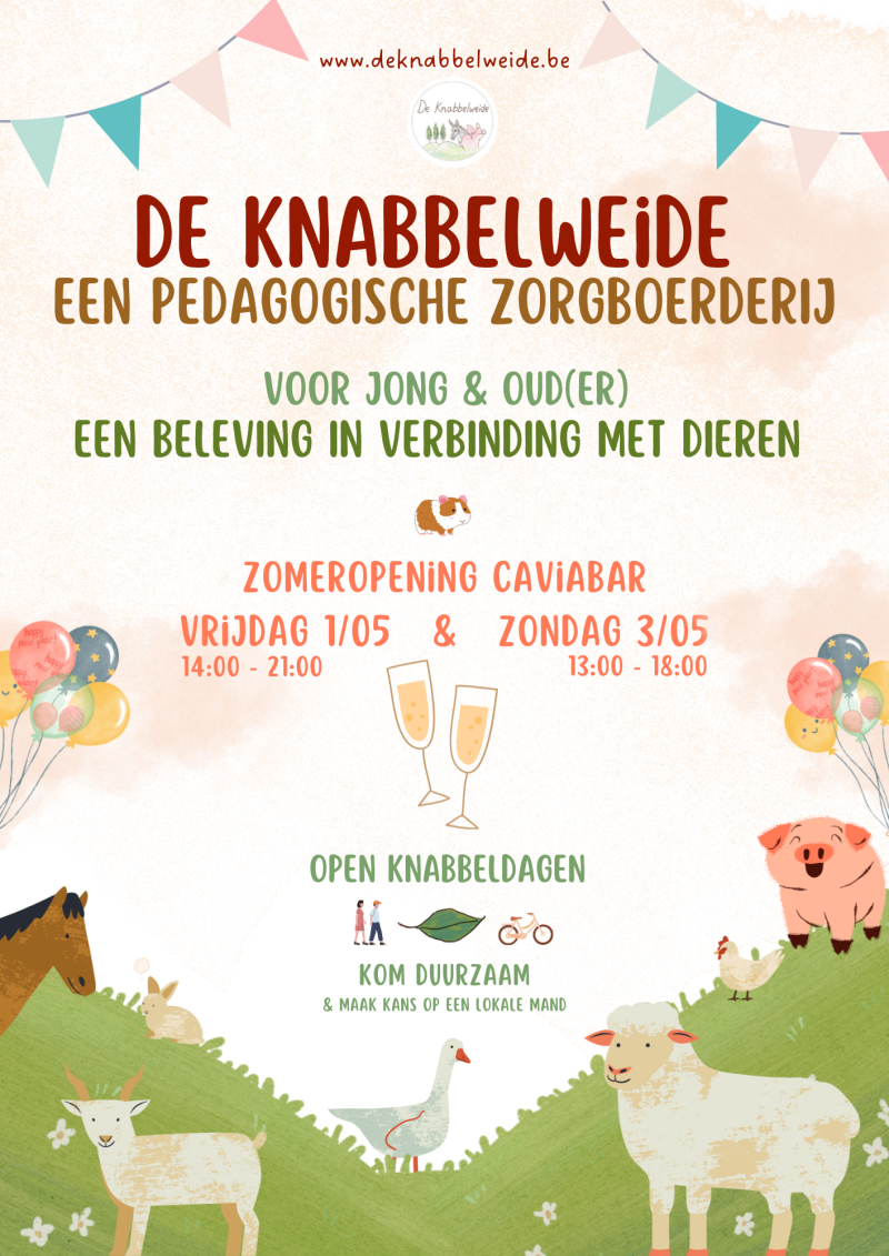 Suivez-nous sur les réseaux sociaux ! Nous partageons régulièrement des nouvelles sur les préparatifs de De Knabbelweide en vue de notre grande ouverture en juin. Plongez dans nos histoires, découvrez les coulisses et laissez-vous inspirer par cette belle aventure.